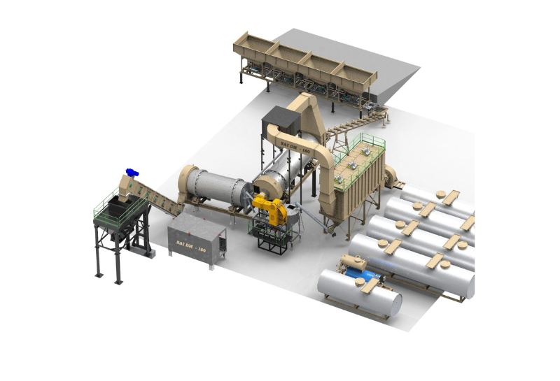 | Drying and Mixing Drum | The heart of the plant, where aggregates are dried and mixed with bitumen in two separate but synchronized zones. |